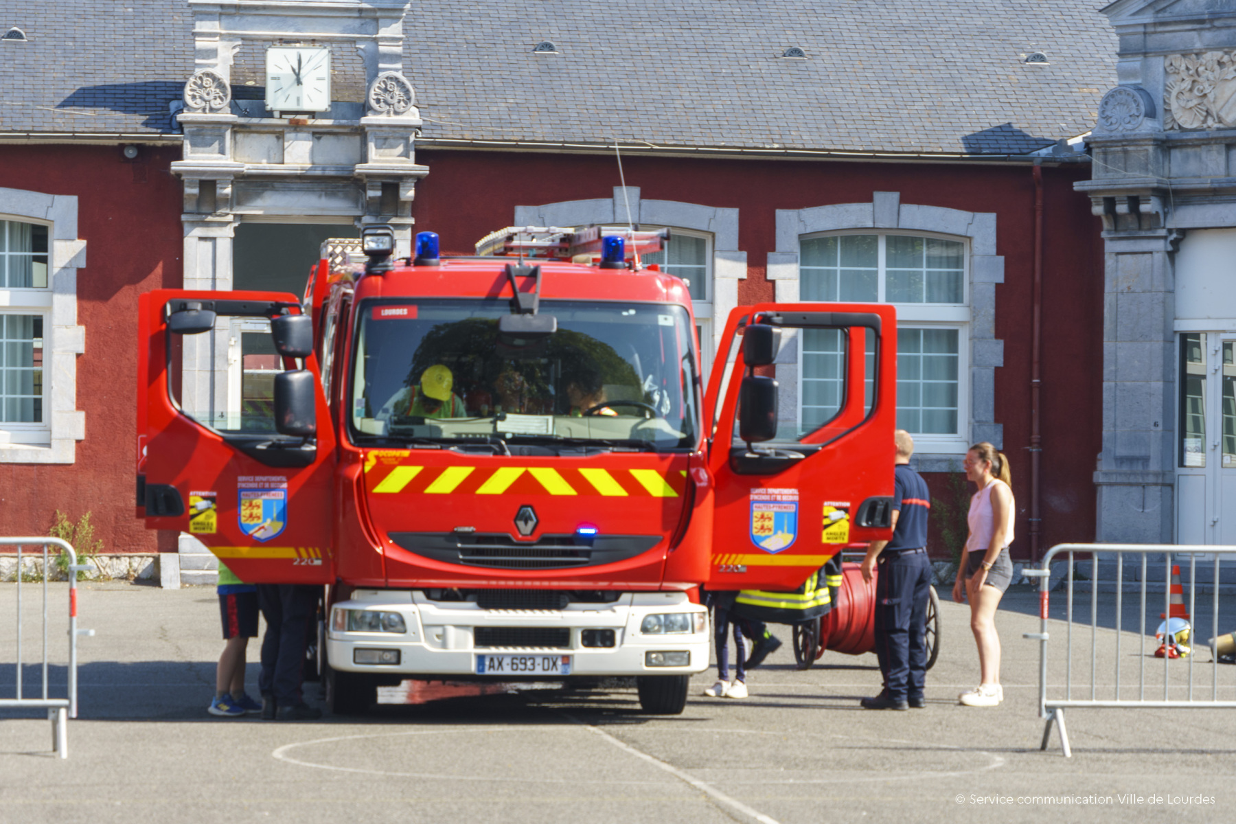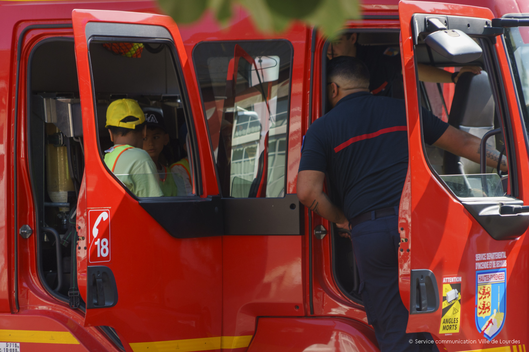 ● Prévention et premiers secours avec les pompiers du SDIS 65 : découverte et exploration des équipements d’un camion de secours, notamment une initiation à l’usage de la lance à incendie.