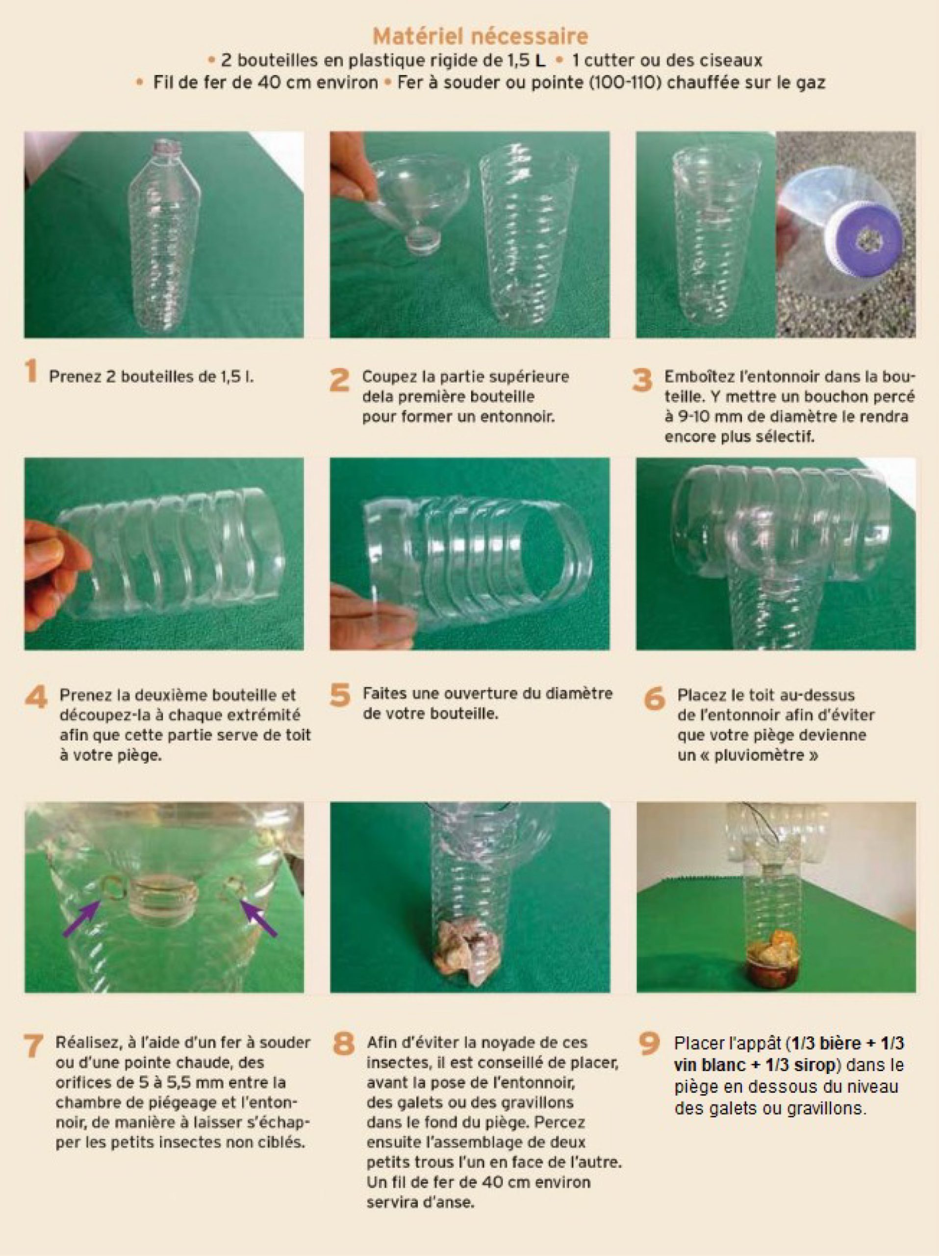Pour les bricoleurs, il est tout à fait possible de fabriquer soi-même un piège efficace. Une fiche pratique détaille pas à pas la construction du dispositif.