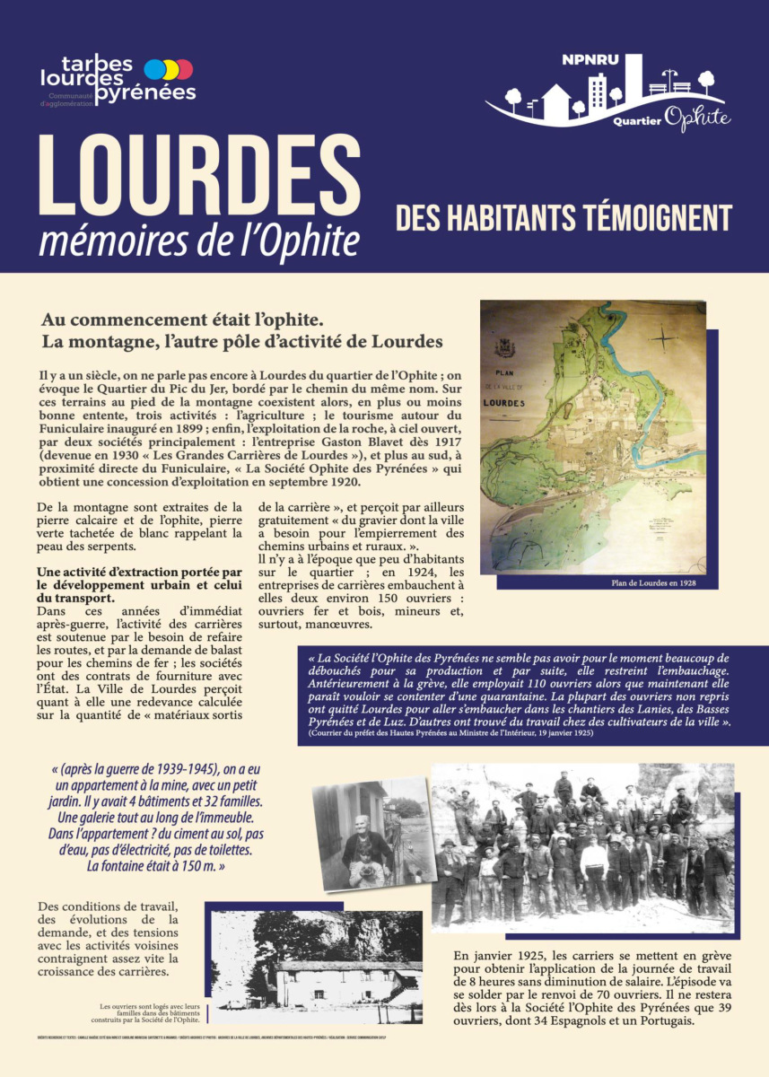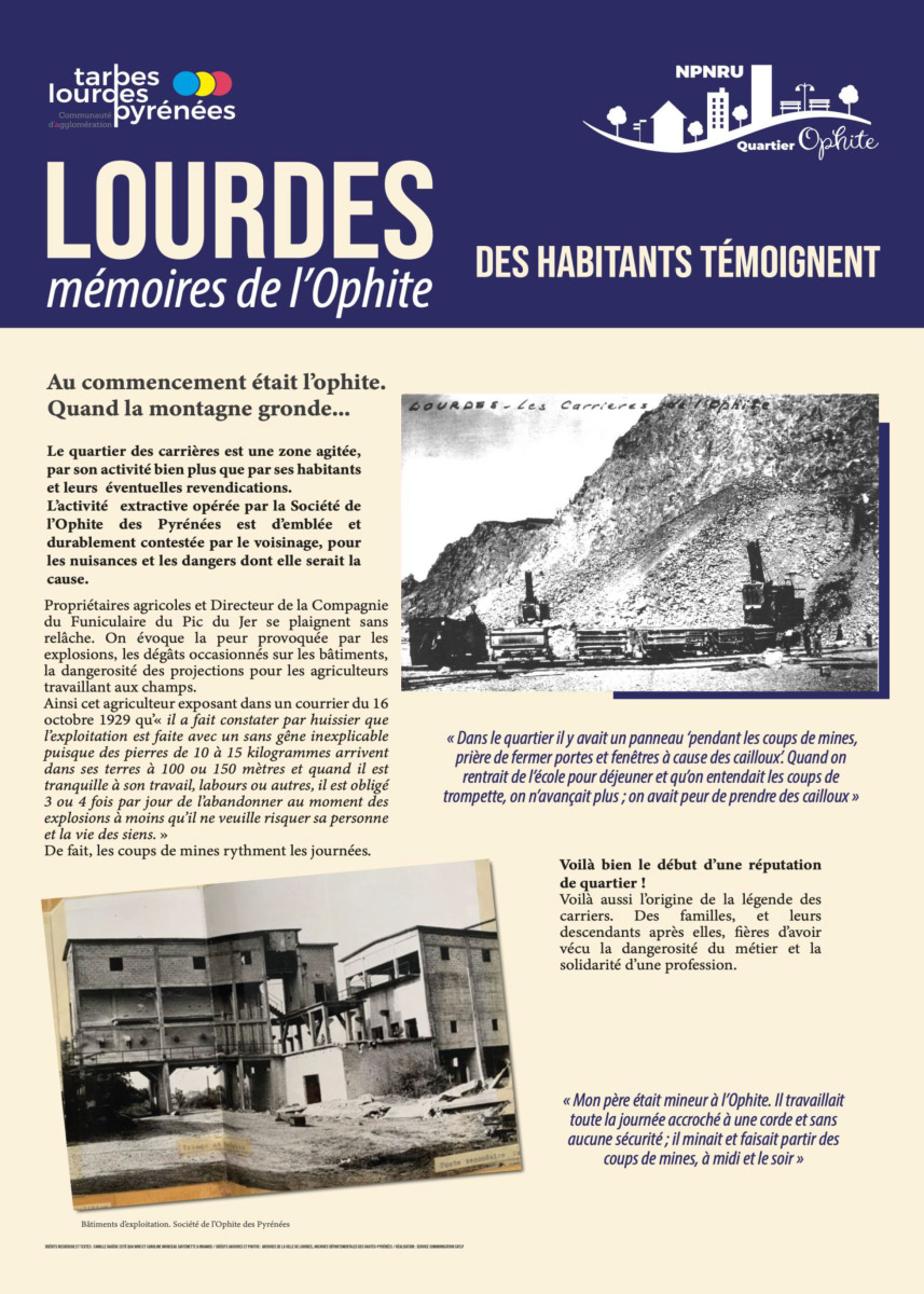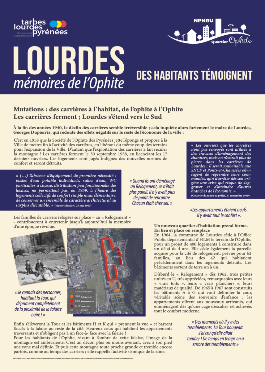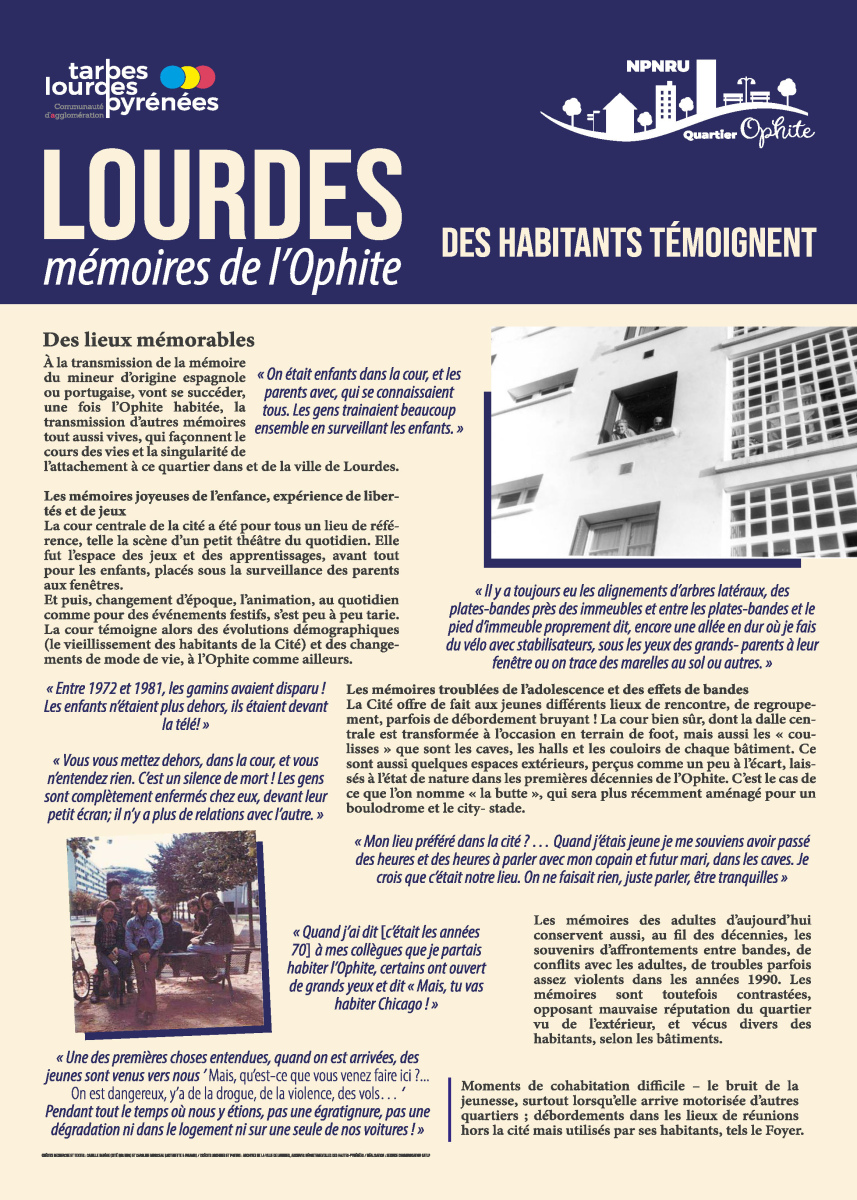 La réalisation de cette exposition liée à la reconnaissance et à la mise en valeur de la mémoire du quartier intervient dans le cadre du Nouveau Programme National de Renouvellement Urbain, le NPNRU de l’Ophite à Lourdes.