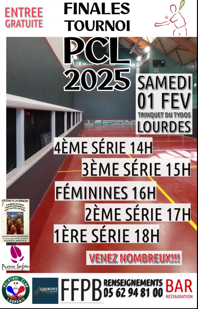 Le Pelotari Club Lourdais organise une journée dédiée à la pelote basque, avec cinq finales au programme : de la 4e série à la 1ère série, ainsi qu’une finale féminine. Les amateurs de ce sport apprécieront les performances techniques et le beau jeu, tandis que l’ambiance promet d’être chaleureuse et festive.