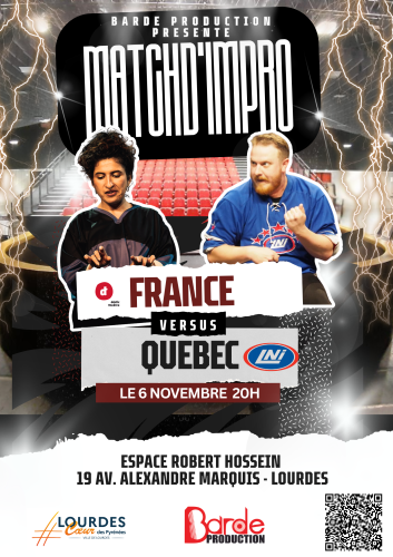 Barde Production précise : « Le Québec revient à Lourdes le jeudi 6 novembre pour un match d’impro exceptionnel. Il affrontera cette fois la célèbre troupe Déclic Théâtre des Yvelines, berceau de comédiens comme Jamel Debbouze, Issa Doumbia, Arnaud Tsamere ou encore Sophia Aram. Un duel scénique explosif entre deux écoles de l’improvisation.