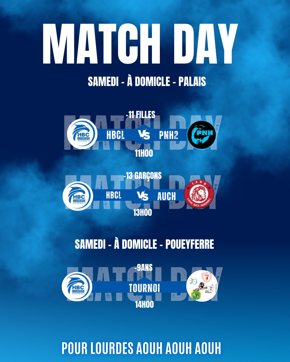 Le Handball Club Lourdais organise plusieurs rencontres tout au long de la journée du samedi, réparties entre le Palais des Sports et le complexe multisports de Poueyferré.