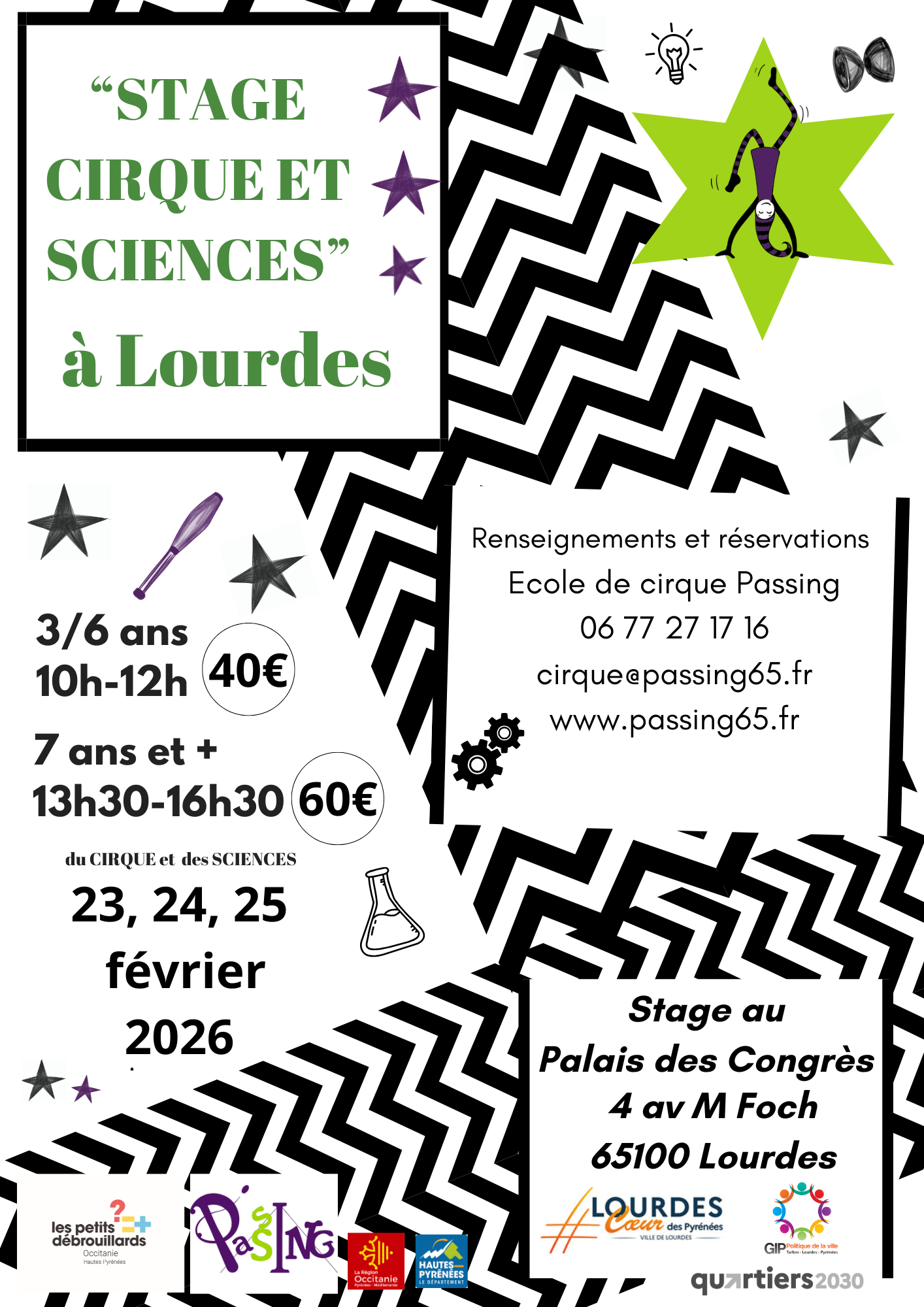 Infos et inscriptions auprès de l’école de cirque Passing au 06 77 27 17 16 ou cirque@passing65.fr