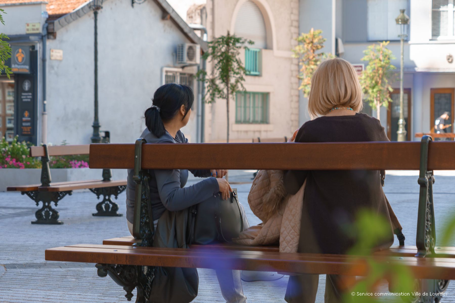 L’espace, désormais piétons, propose des bancs, simples et doubles et une fontaine qui vient d’être mise en eaux.
