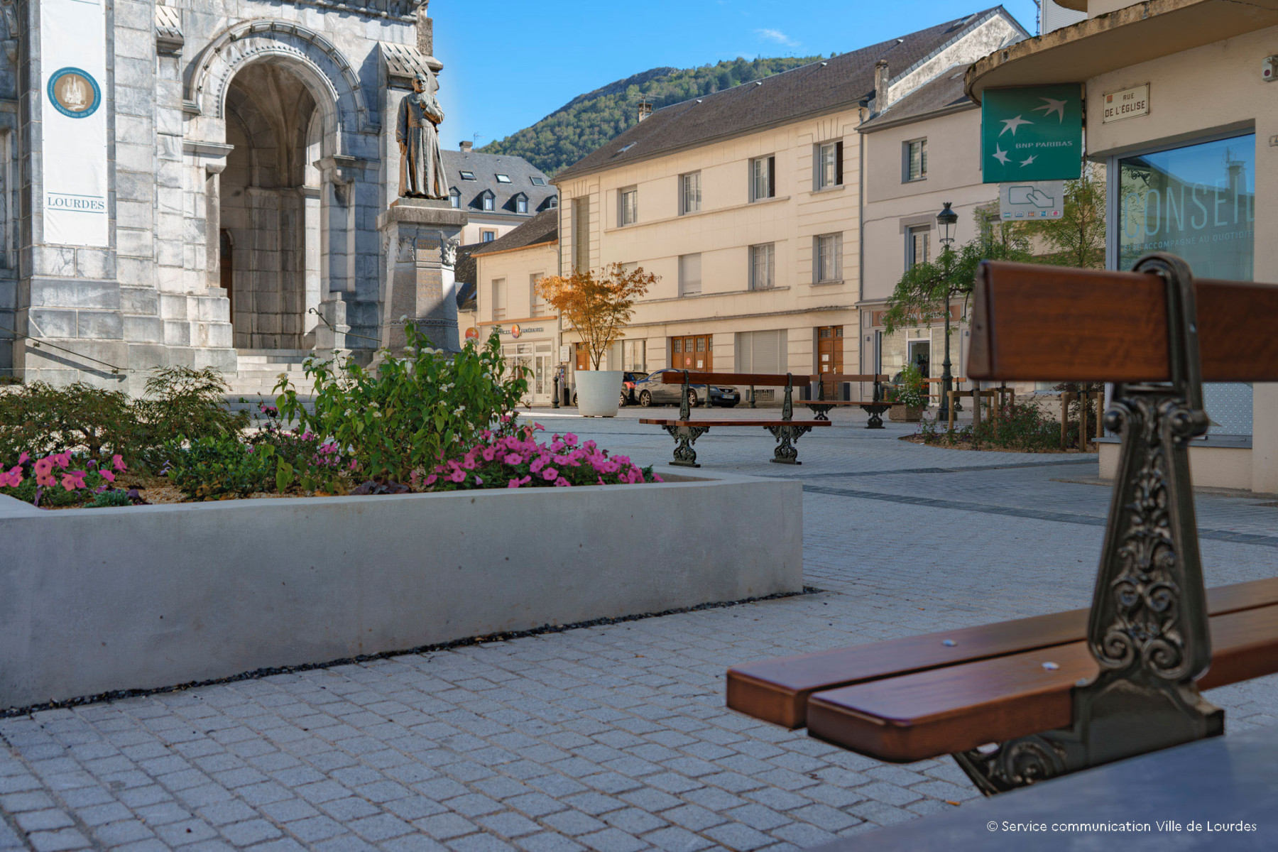 De par son allure et les matériaux sélectionnés, la rue et le parvis se présentent aujourd’hui comme un square traditionnel du XIXe siècle. L’objectif consistait à créer un site apaisé, propice à la contemplation, un lieu de promenade, de détente et de visite.
