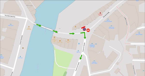 Les véhicules venant du Pont Vieux et souhaitant accéder à la rue de la Grotte seront déviés par :
