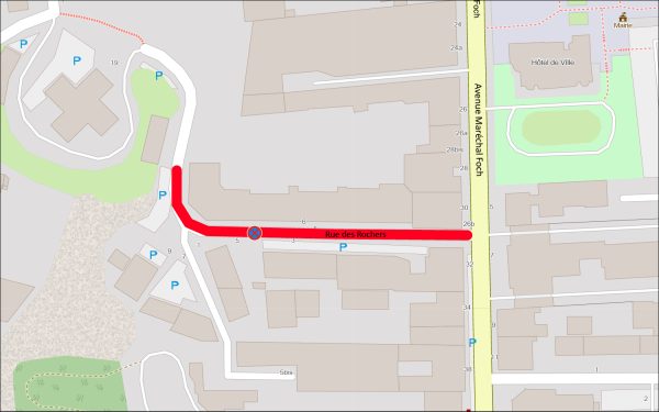 - Le stationnement sera interdit rue des Rochers, en fonction de l’avancement des travaux.