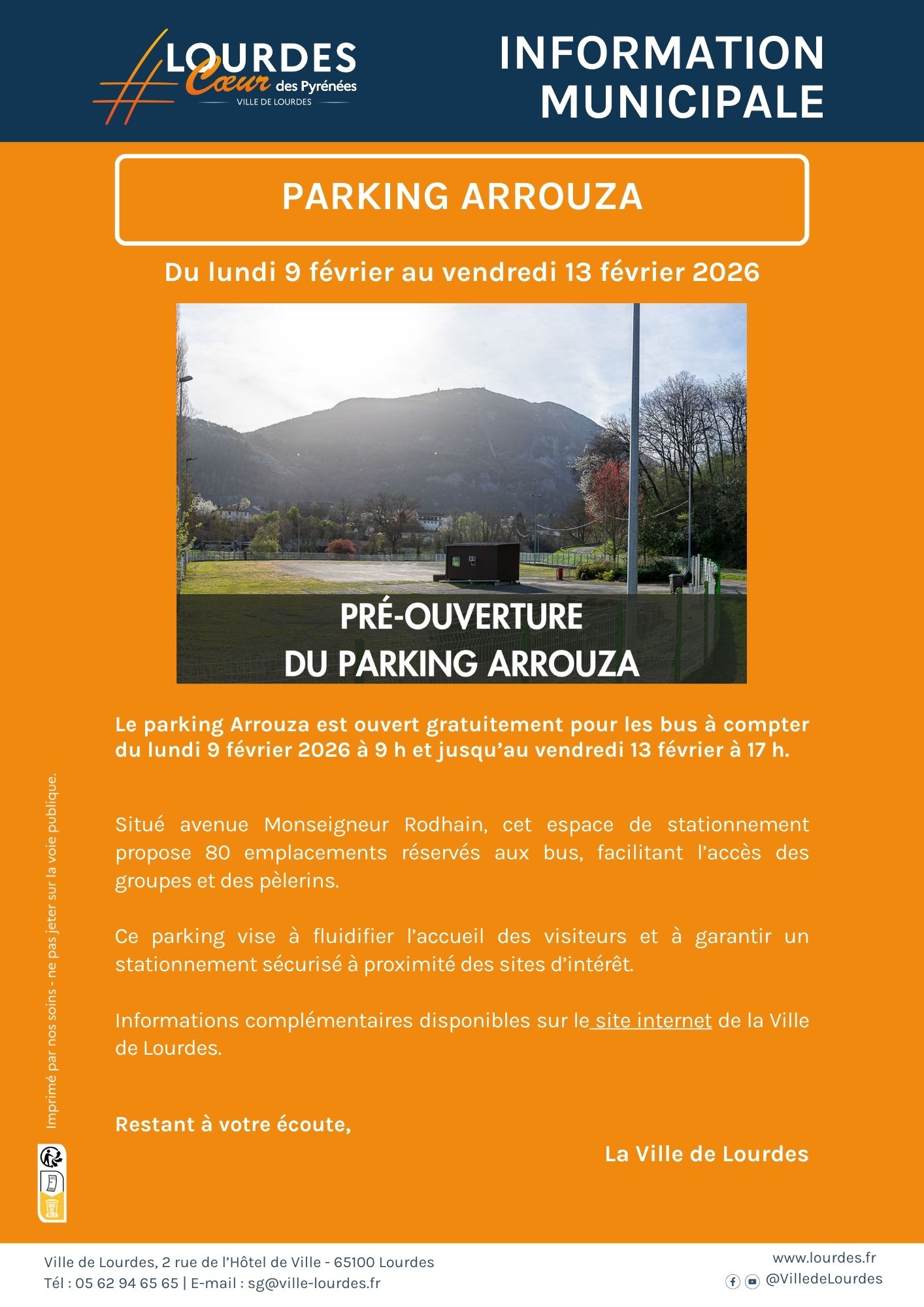 Le parking Arrouza est ouvert gratuitement pour les bus à compter du lundi 9 février 2026 à 9 h et jusqu’au vendredi 13 février à 17 h.