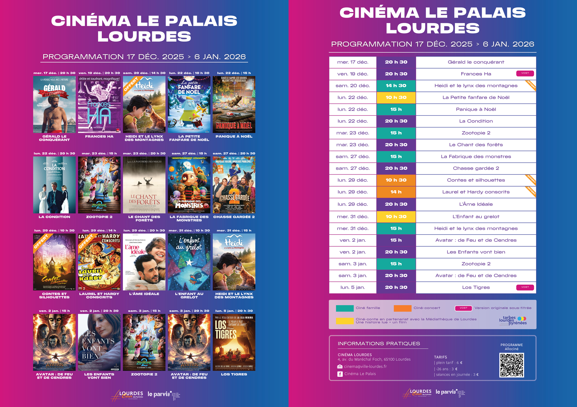 Télécharger le Programme du Cinéma Le Palais du 16 déc. 2025 au 6 jan. 2026