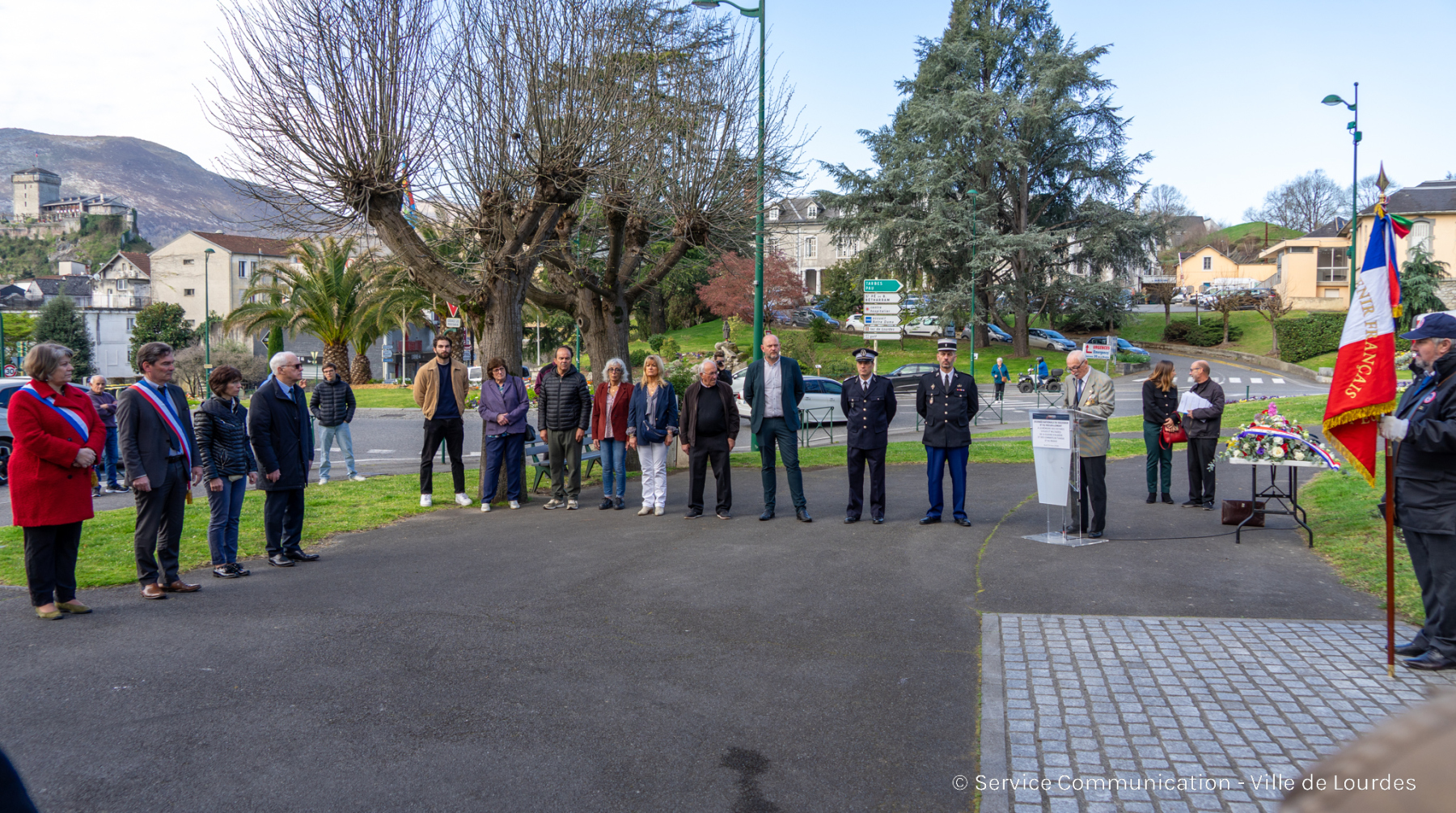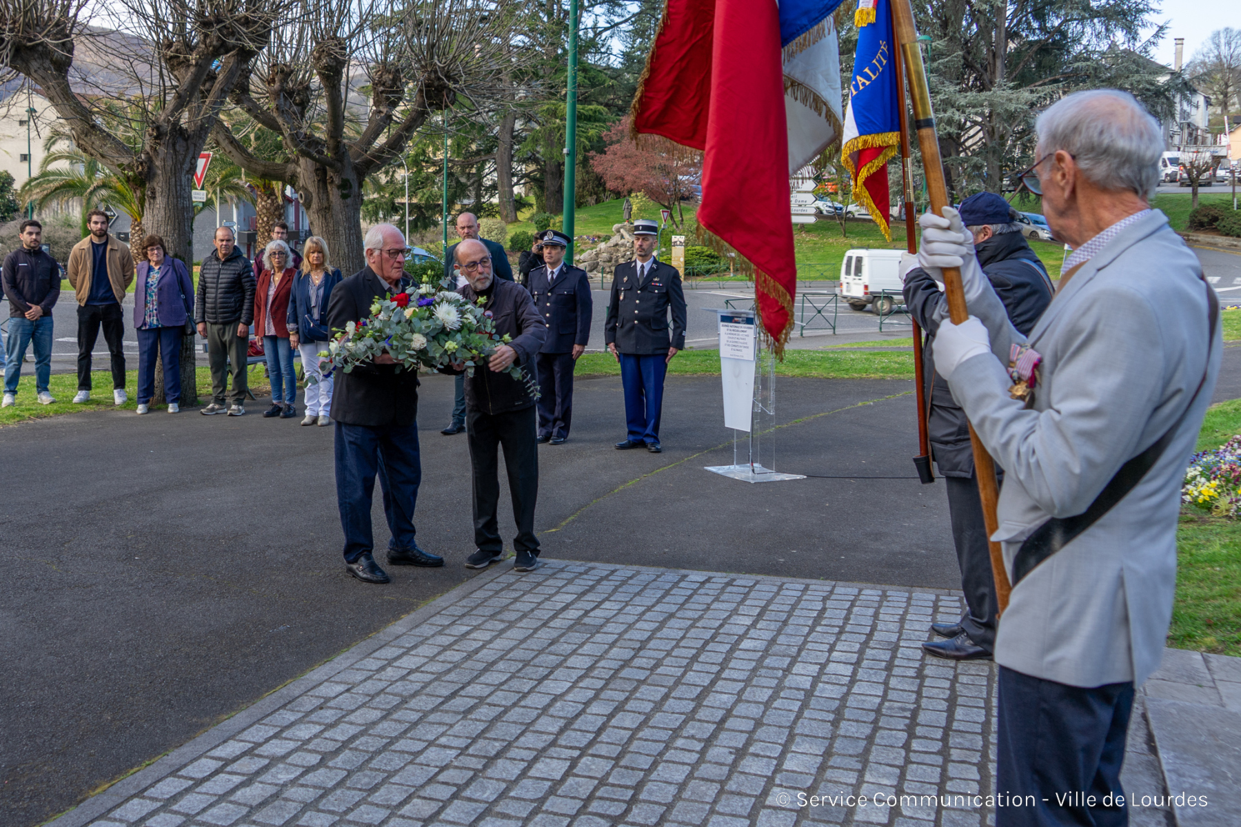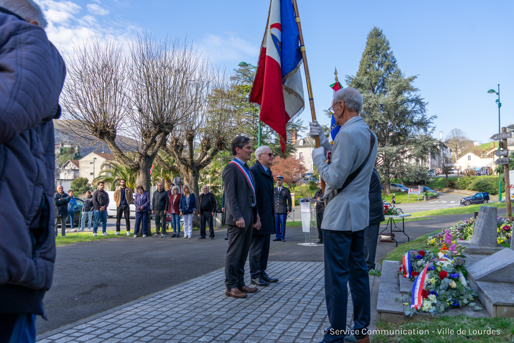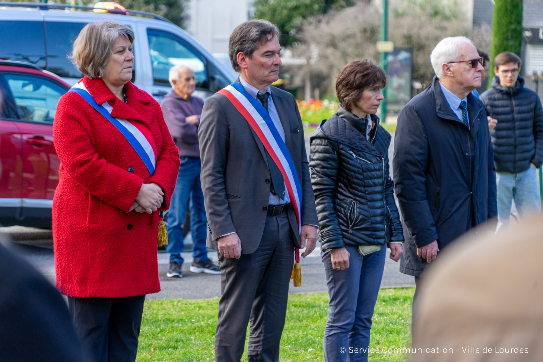 Cette cérémonie a été présidée par Thierry Lavit, Maire de Lourdes, accompagné de Philippe Ernandez, de Marie Plane, conseillère départementale, et de Maryse Carrère, sénatrice des Hautes-Pyrénées. Cette commémoration a rassemblé autour du public les présidents de la FNACA et du Souvenir Français et les membres d’associations patriotiques, leurs Portes-drapeaux et des représentants des forces de l’ordre : Gendarmerie et Police nationale.