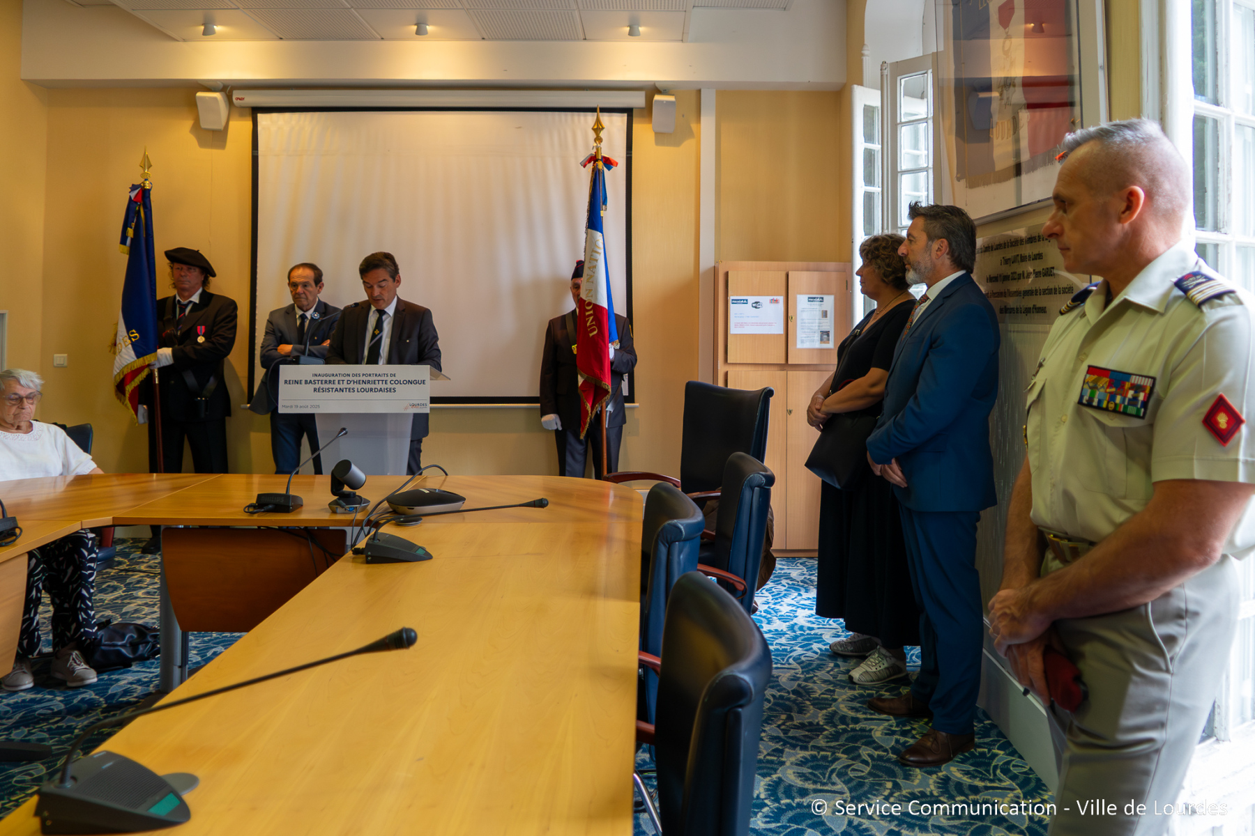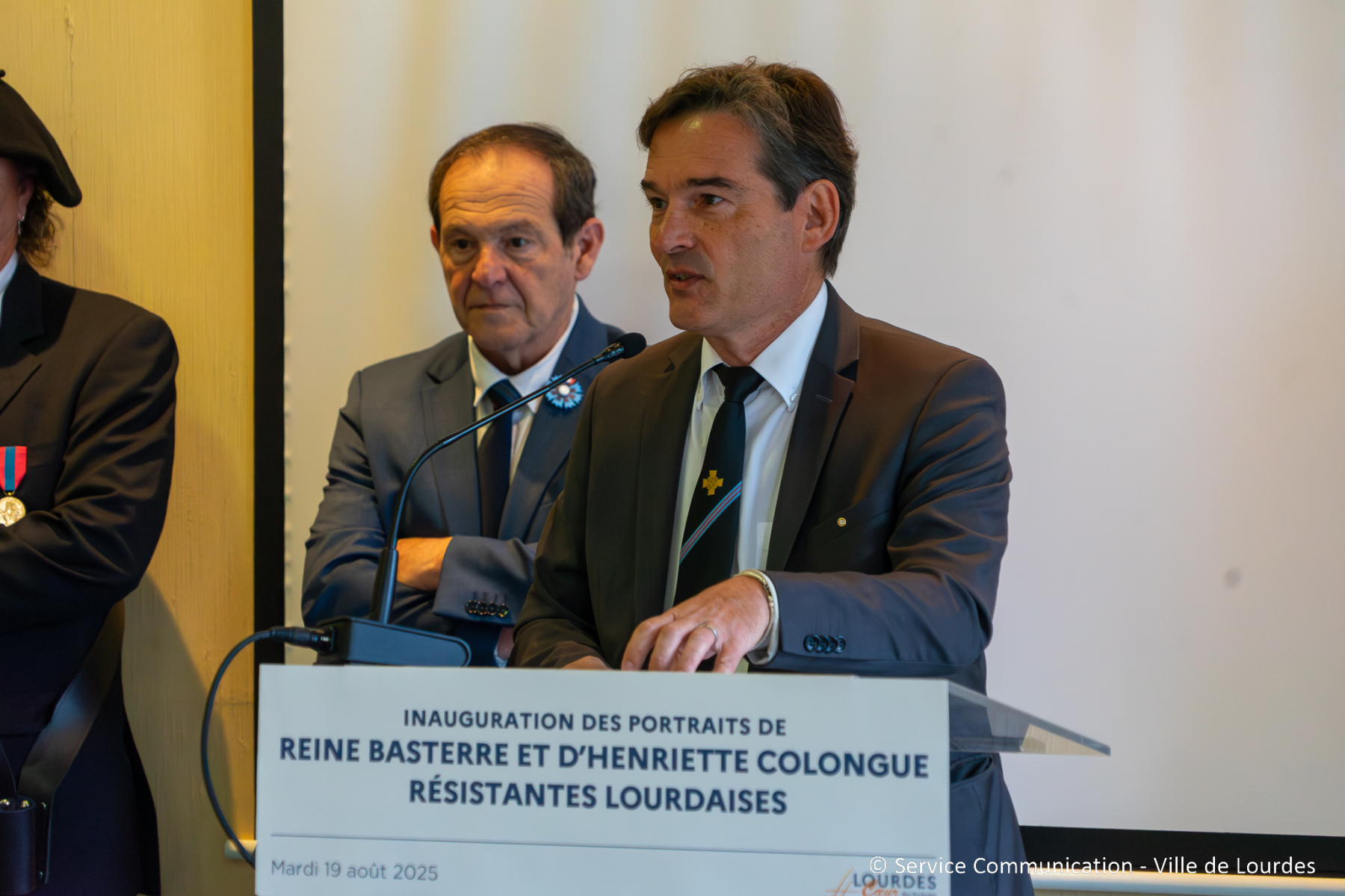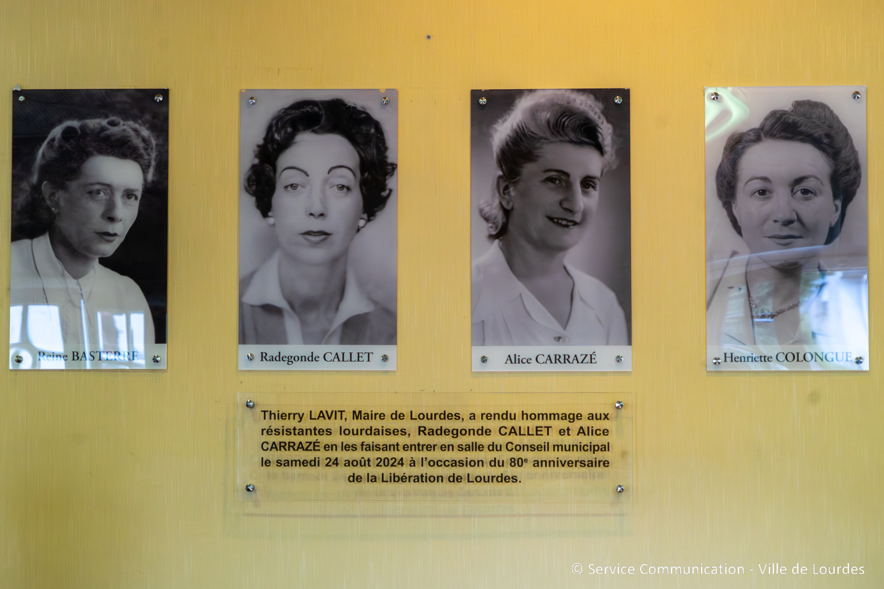 À l’occasion du 80e anniversaire de la Libération de Lourdes en 2024, Radegonde Callet et Alice Carrazé, deux figures de la Résistance avaient rejoint la galerie des portraits de résistants de la salle du Conseil municipal comme l’a rappelé le Maire : “L’année dernière, à l’occasion du 80e anniversaire de la Libération, nous avions fait entrer deux nouvelles figures de la Résistance : Radegonde Callet et Alice Carrazé. Aujourd’hui, nous continuons à honorer deux autres femmes qui ont, elles aussi, contribué aux actions de résistance dans notre ville. Nous avons souhaité, avec les élus de la Ville de Lourdes, mettre à l’honneur deux femmes : Reine Basterre et Henriette Collongue qui ont largement contribué aux actions de la Résistance dans notre cité et qui ont donc toute leur place dans la salle du Conseil aux côtés des autres résistants déjà présents.
