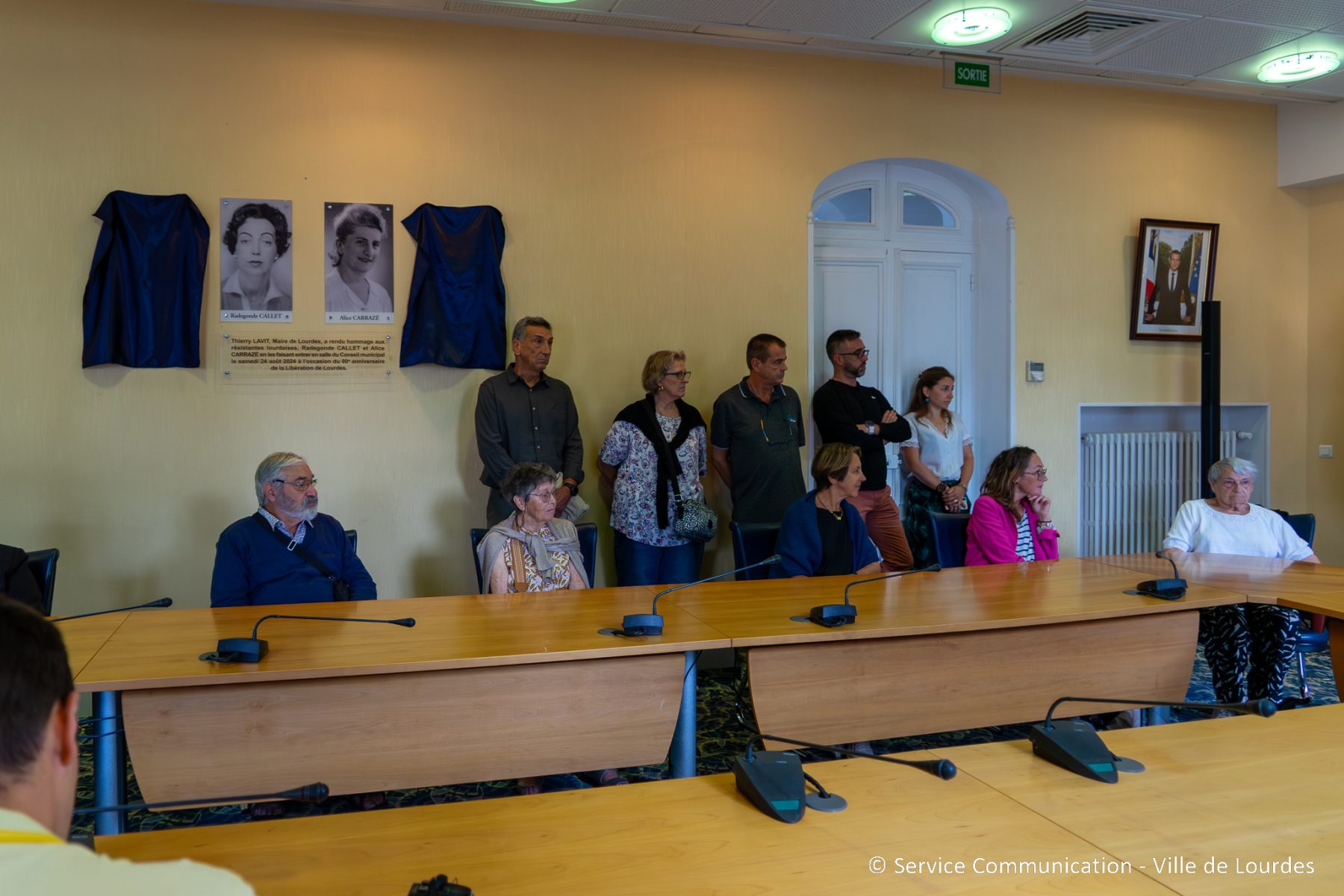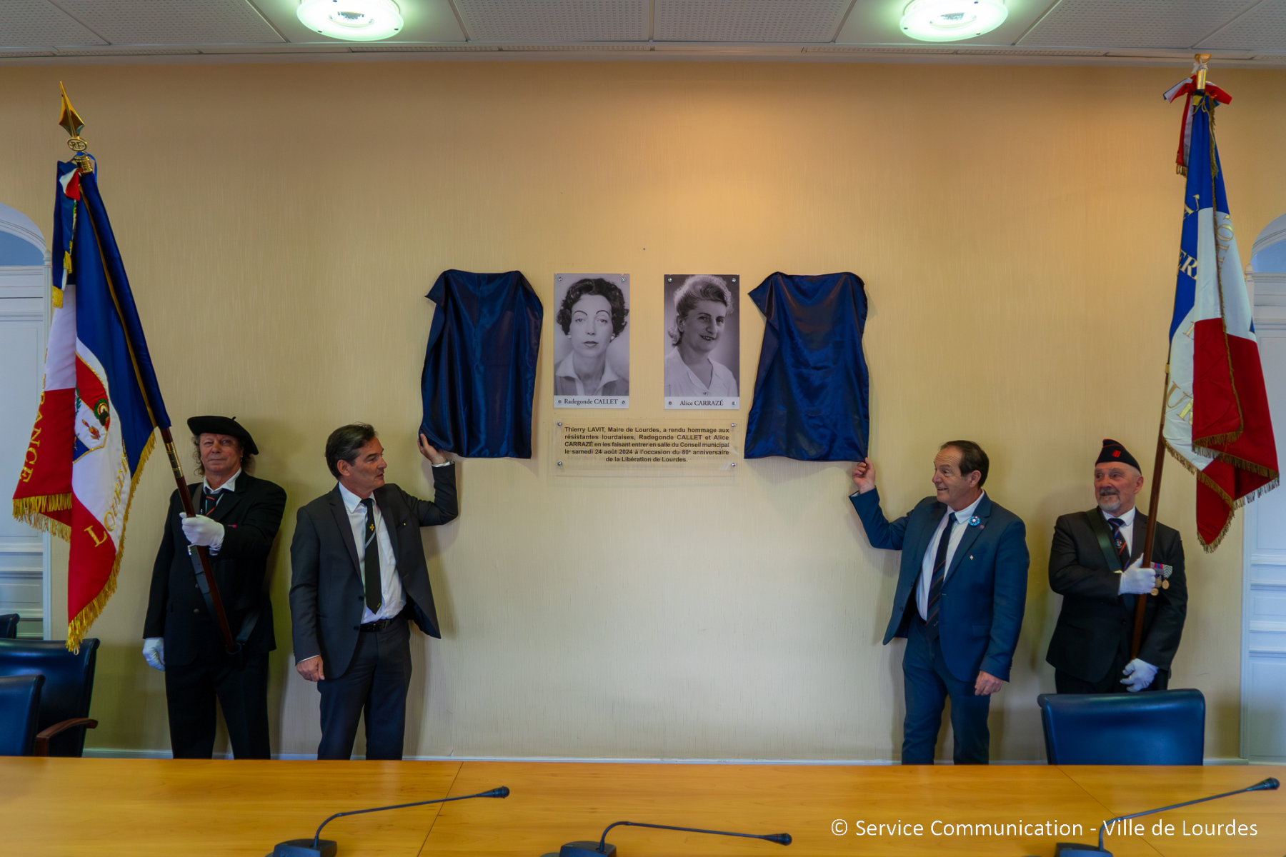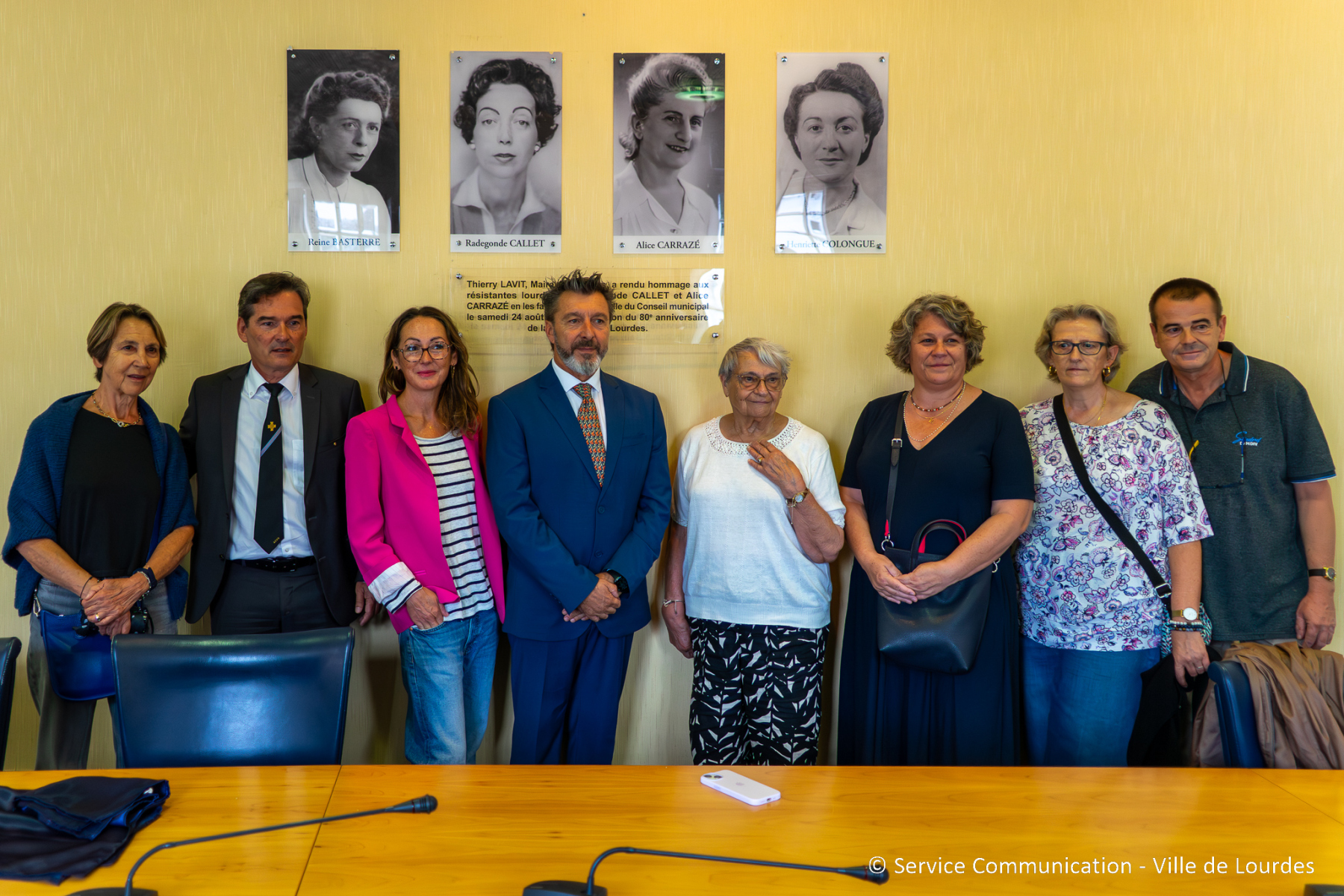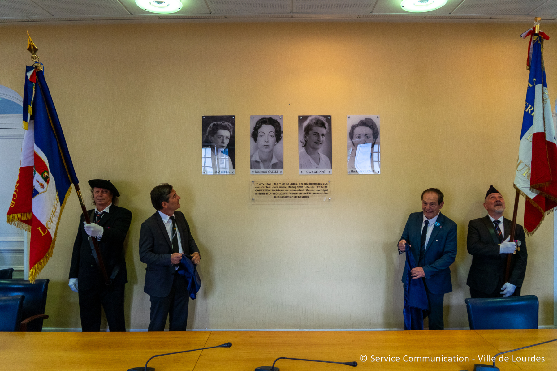La cérémonie a débuté par la présentation des portraits de deux résistantes lourdaises en salle du Conseil municipal en présence de leurs familles, rejoignant ainsi le mur d’hommage aux résistantes lourdaises honorées en 2024 : Radegonde Callet et Alice Carrazé.