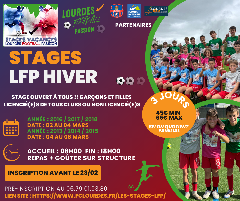 Le stage Lourdes Football Passion (LFP) est de retour durant les vacances d’hiver. Les inscriptions sont ouvertes pour ce stage à destination des jeunes passionnés de sport, garçons et filles.