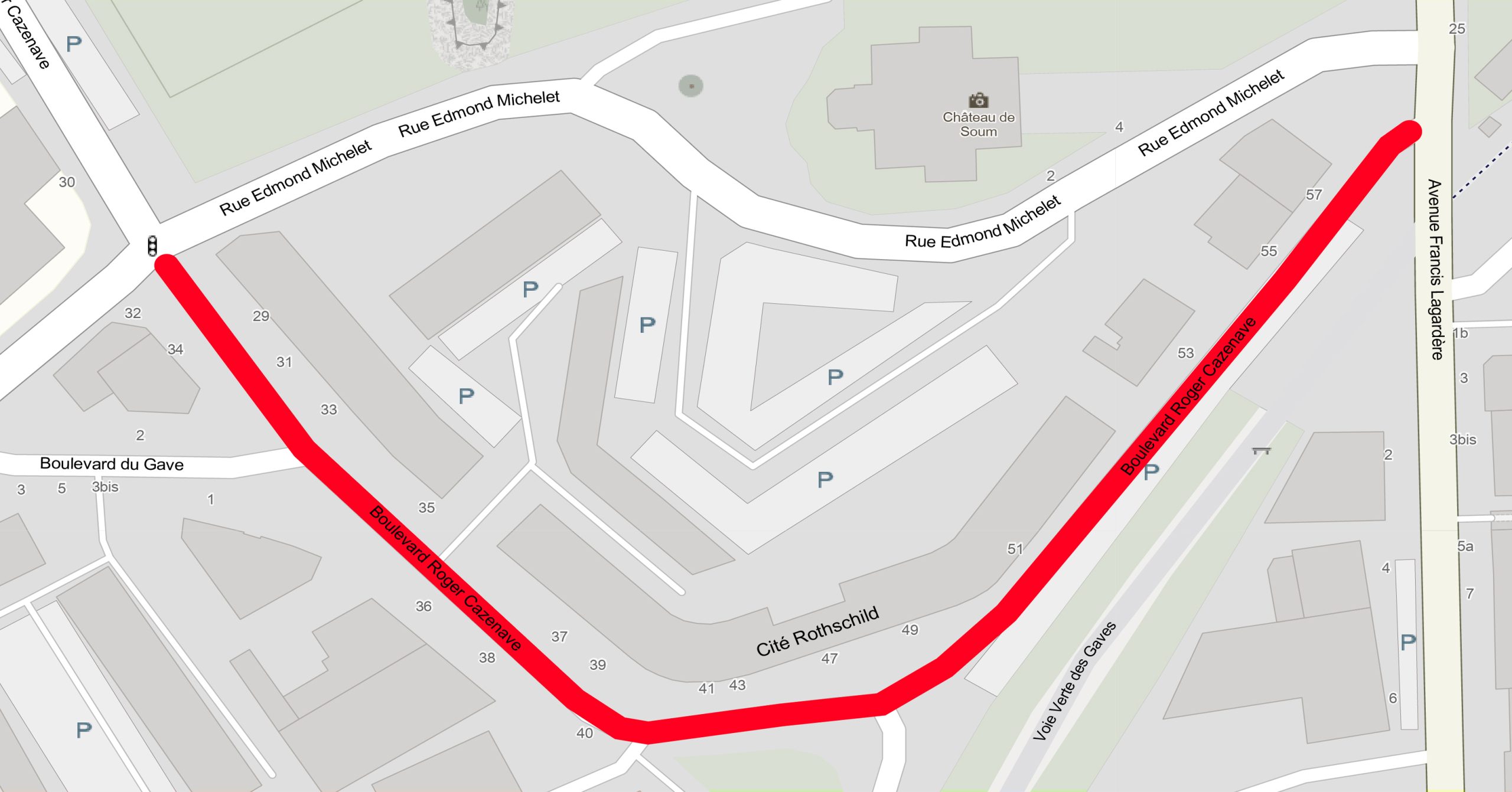 • la route sera barrée boulevard Roger Cazenave dans la portion comprise entre le boulevard du Gave et l’avenue Francis Lagardère (le long de la cité Rothschild),