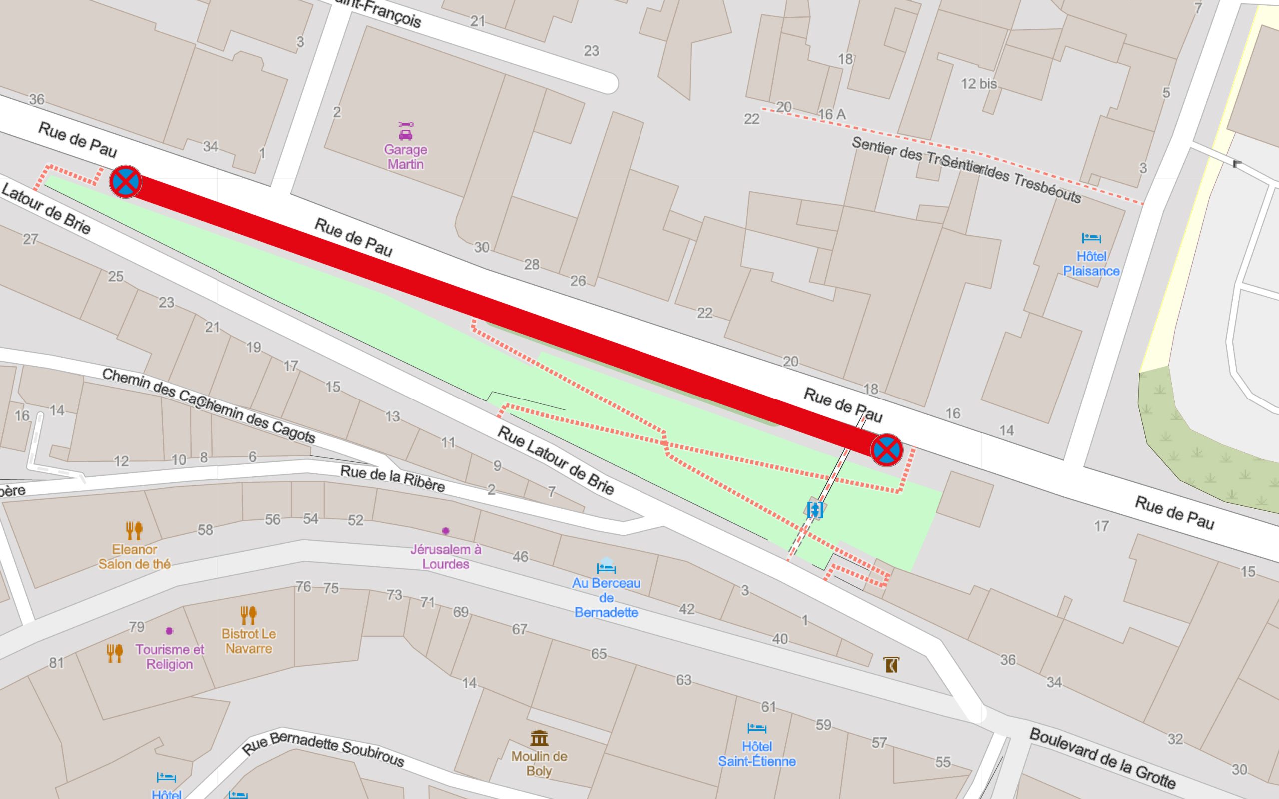 • Le stationnement sera interdit rue de Pau en fonction des besoins du chantier et de l’avancement des travaux.