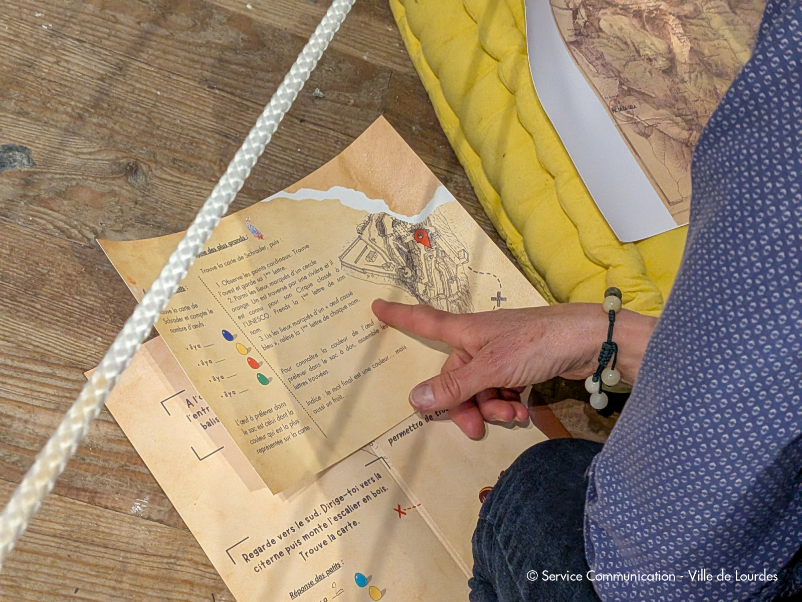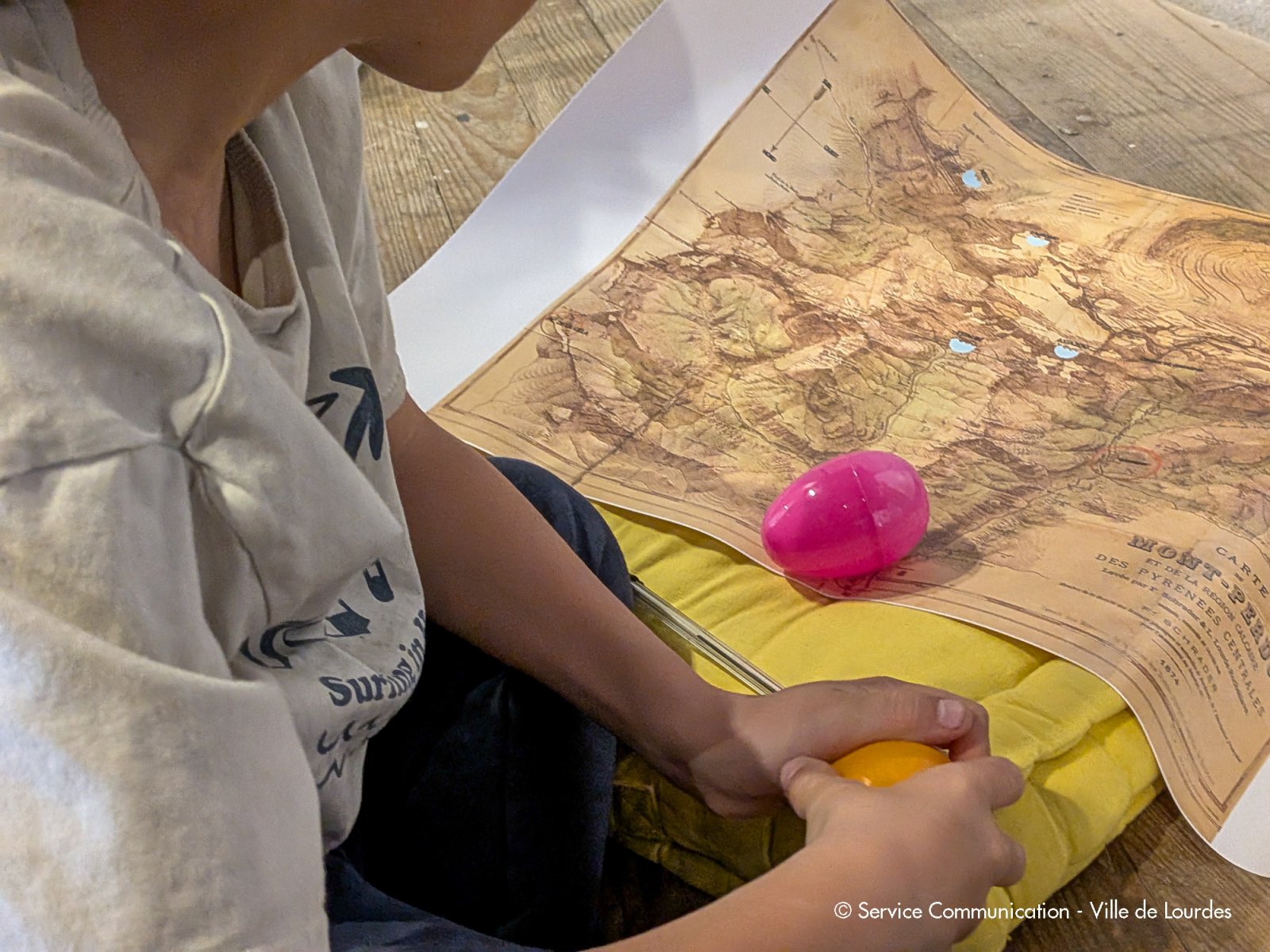 Munis de leur carte au trésor, les enfants ont silloné les recoins du Château fort – Musée pyrénéen à la recherche du bout de carte manquant. Une fois le puzzle reconstitué, la carte complète leur a révélé l’emplacement d’un savoureux trésor de Pâques !