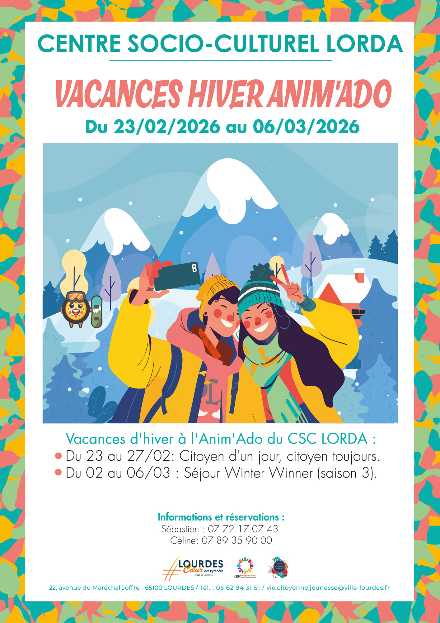 Pendant les vacances d’hiver, du lundi 23 février au vendredi 6 mars 2026, le Centre socio-culturel Lorda propose un programme 100 % Anim’Ado, spécialement conçu pour les jeunes de 11 à 17 ans.